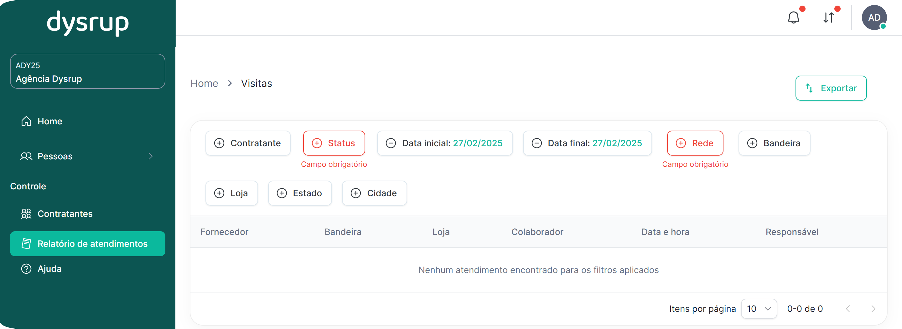 Este guia tem como objetivo orientar o usuário a consultar os atendimentos registrados pelos promotores dentro do sistema Dysrup Controle.
